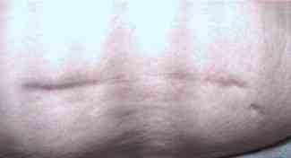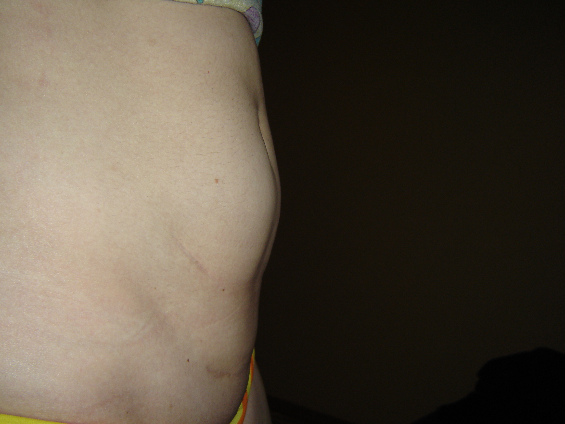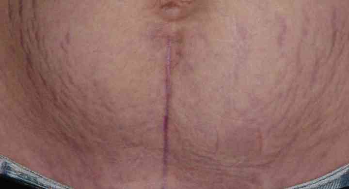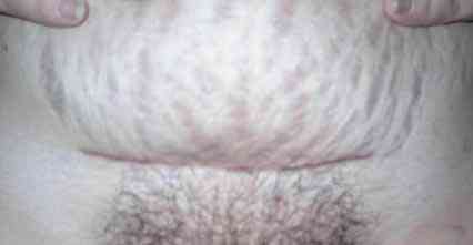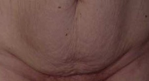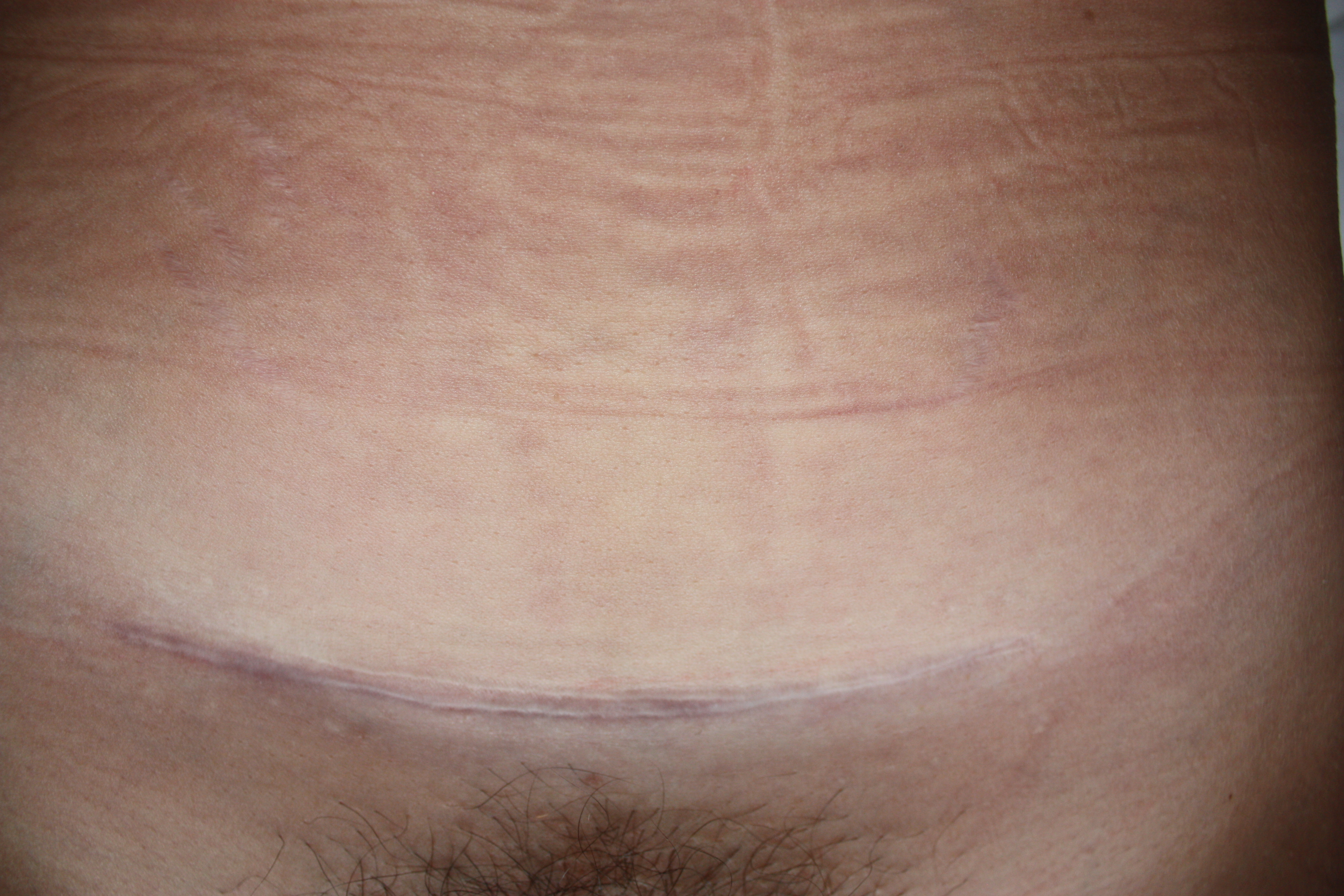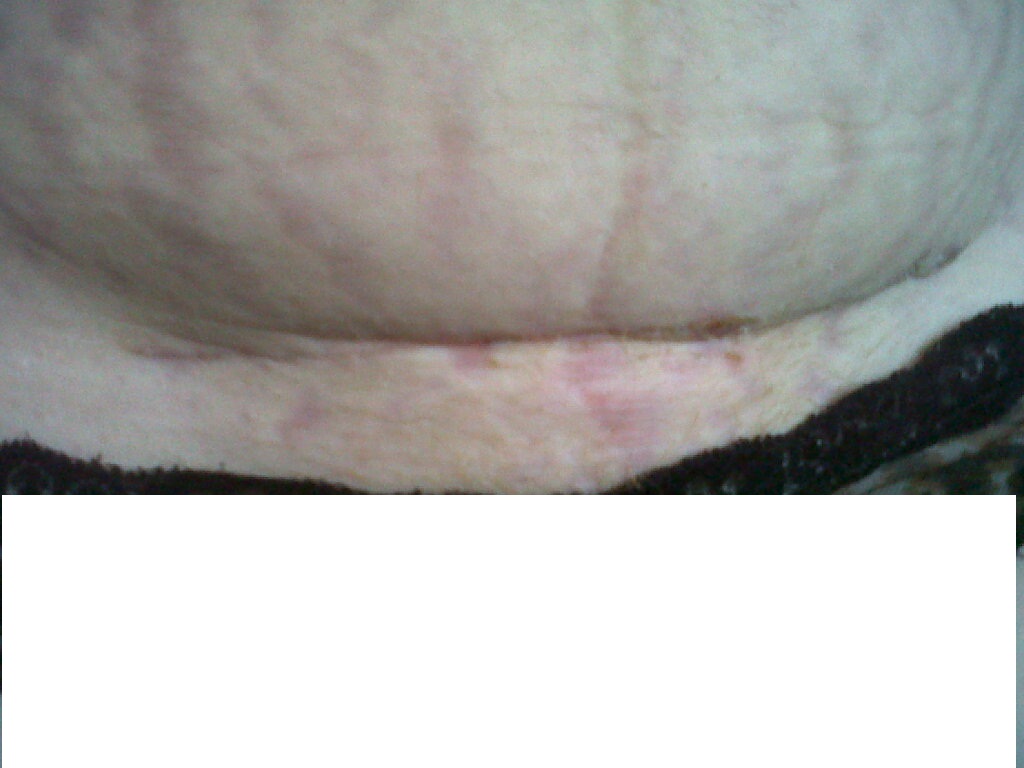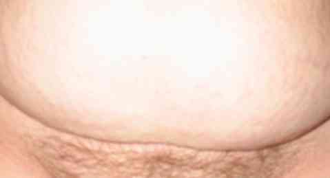 This was a third caesarean carried out in UK. The first picture the mother has held up the "ceasarean overhang", the scar is indented as the
