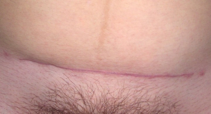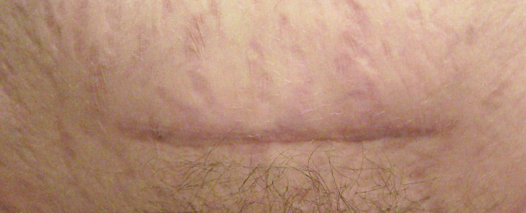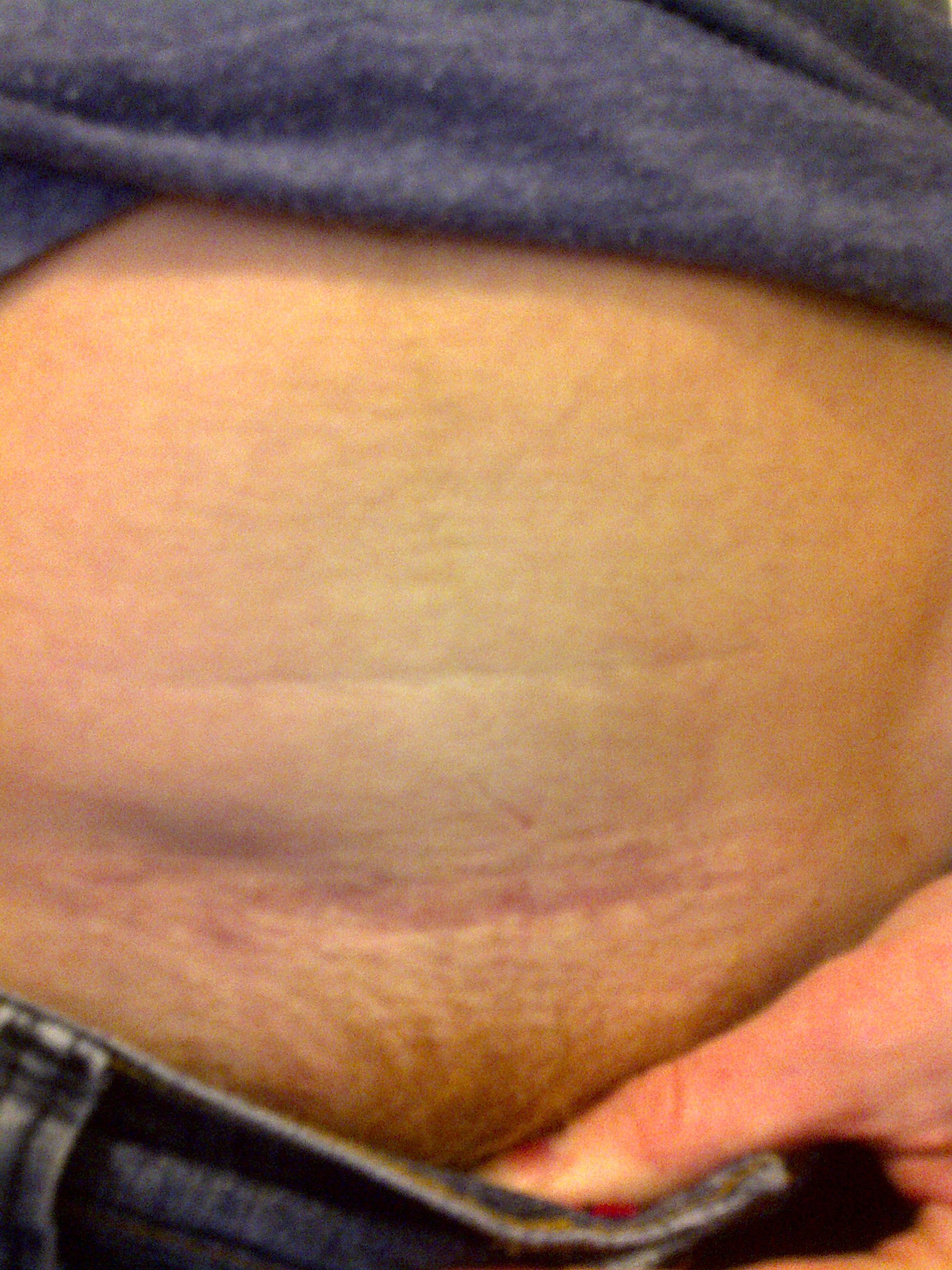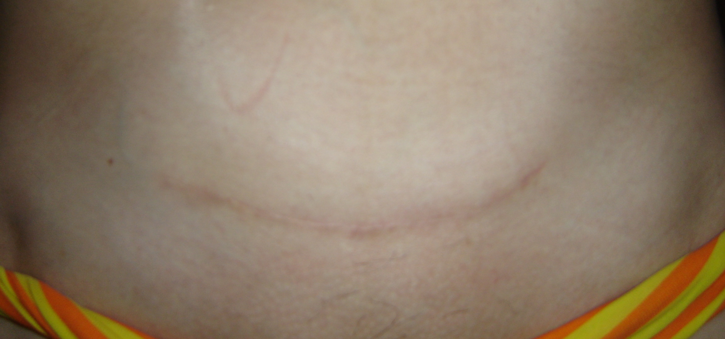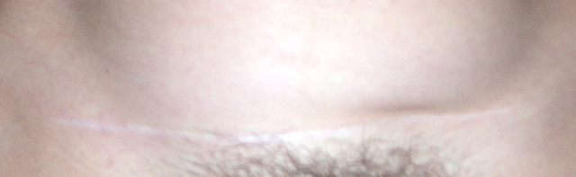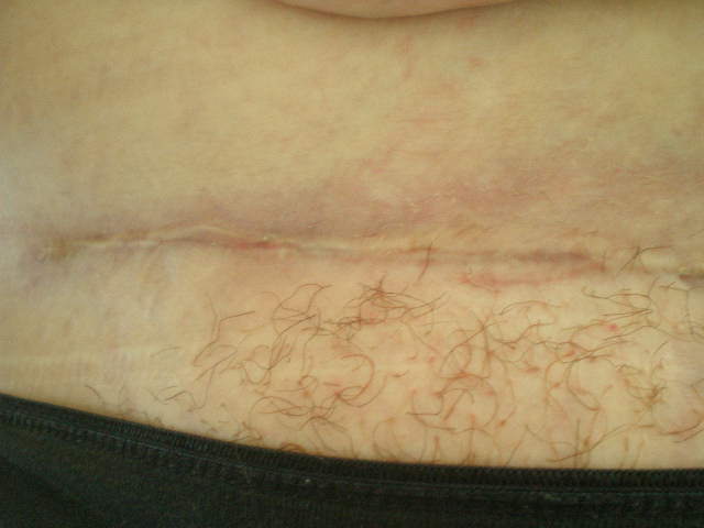 This was a first caesarean carried out in USA. 6 months previously the scar was still really red.