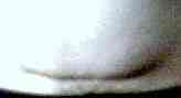 no fat layer underneath, and as the second picture shows disappears into the hollow leaving an overhang when standing